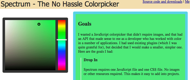 Thanks much for doing this. Do you know of a sample HTML that uses your color picker? I see bits and pieces of code on your page, but would love to see the whole thing together in one HTML page, with the field and the $(#picker).spectrum references. I’m a nasty javascript developer and it’s hard for me to make sense of the snippets semi-out of context.